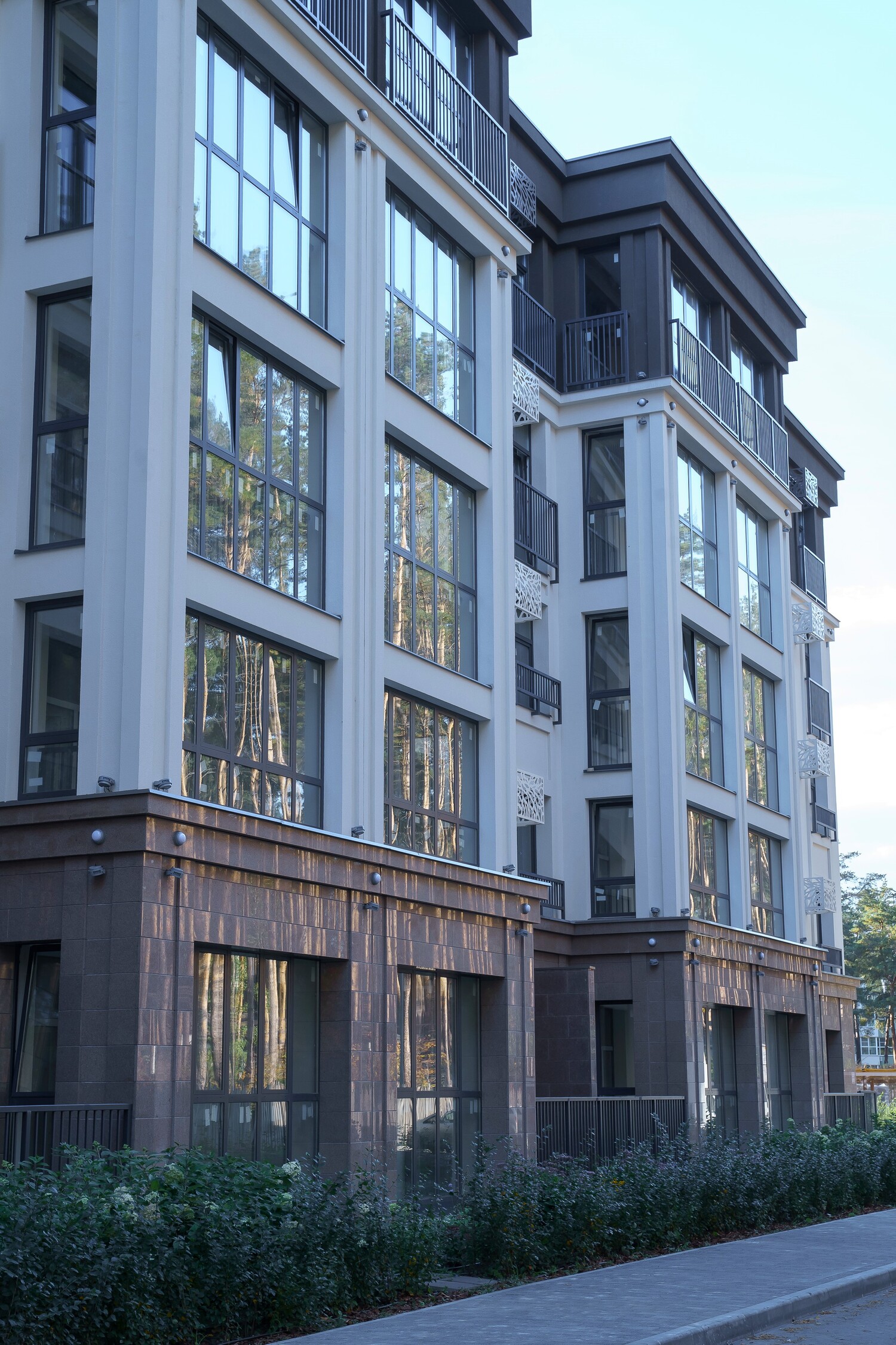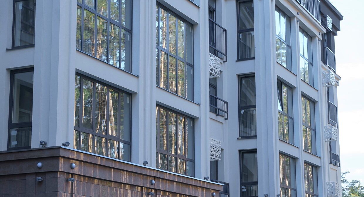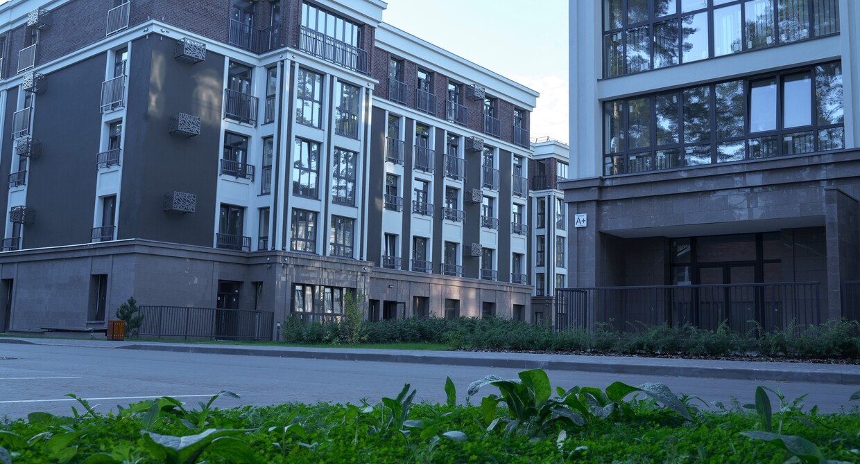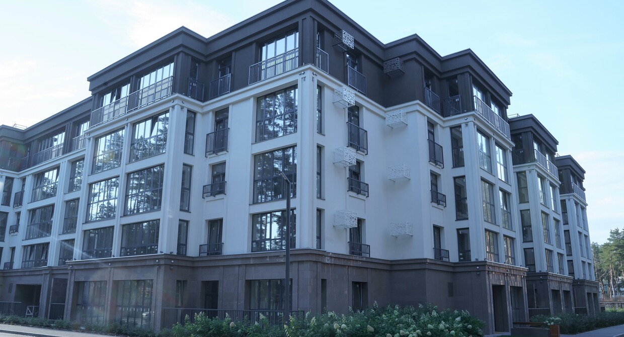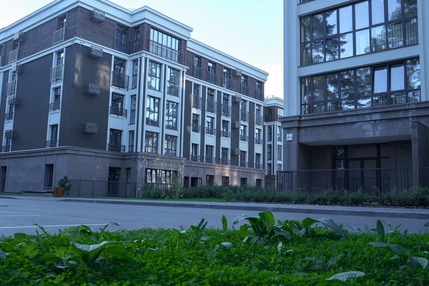 Каждый из домов по 5 этажей. Дома окружены зеленью, а окна выходят на лес