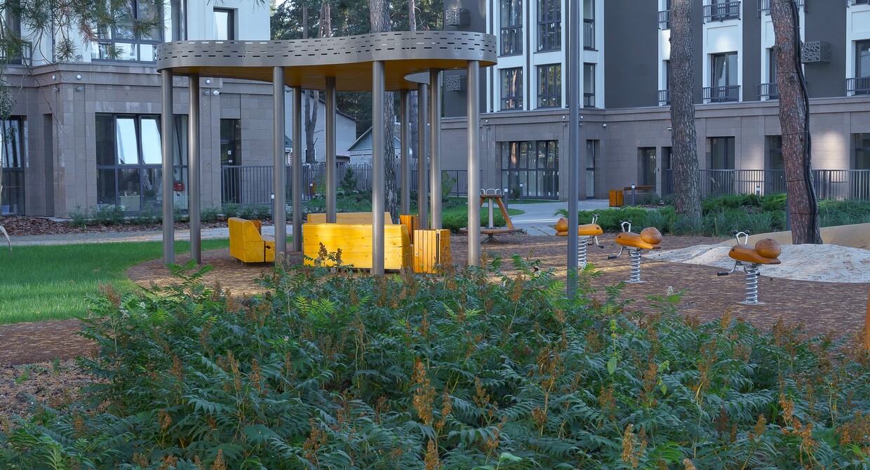 На территории комплекса находятся: зоны для отдыха, детская и спортивная площадки, оборудованные места для паркинга и зона BBQ